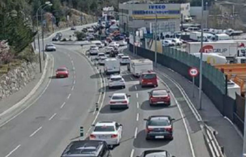 Les retencions han començat cap a les nou del matí. De moment, abasten poc menys d’un quilòmetre. Els cotxes es comencen a aturar pocs metres abans de la rotonda de la depuradora. La previsió és que les cues s’allarguin durant bona part del matí.