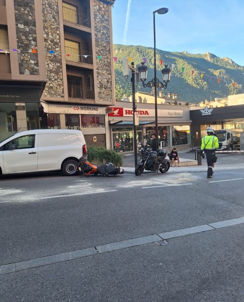 Topada per abast entre dues motos en l’accés a una estació de servei a Andorra la Vella
