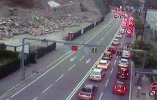 Un vessament de pintura a l’altura de la rotonda d’Aixovall causa importants retencions