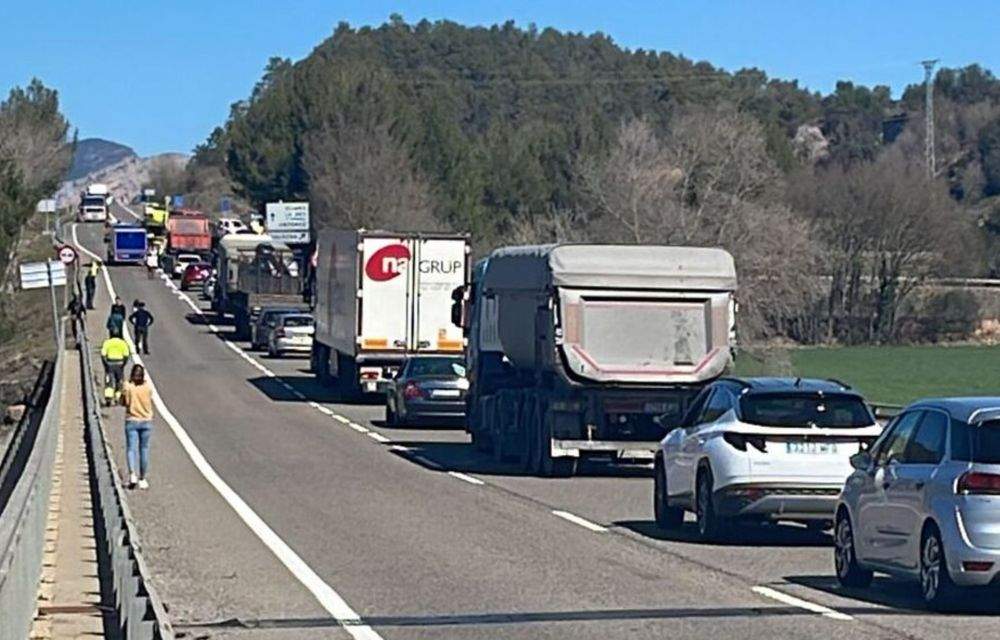 La topada s’ha produït al tomb de 2/4 de 12 del migdia i les retencions s’han allargat durant més d’una hora. El tall de trànsit total ha durat, segons fonts del Servei Català de Trànsit, uns vint minuts i, posteriorment, s’ha donat pas alternatiu. S’ha acumulat una filera de vehicles d’aproximadament un quilòmetre en cadascun dels sentits de circulació.