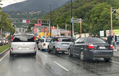 Un xoc en el qual s’han vist implicats tres vehicles està causant un notable col·lapse al centre d’Andorra la Vella i, especialment, a l’avinguda Tarragona, on ha succeït l’accident. La topada en cadena ha ocorregut, justament, a l’altura de l’entrada a l’aparcament de l’Andorra2000. El sinistre ha passat al tomb de 2/4 de 6 de la tarda, en un moment en què queia un petit xàfec.