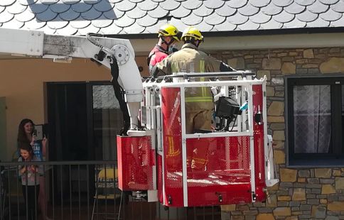 Agents del cos de salvament i extinció d’incendis han acudit a l’indret esmentat amb un camió escala. L’operació ha durat prop d’una hora, sense que presentés cap mena de dificultat. Les teules estaven fracturades. Tot el treball dels bombers ha estat seguit per un nombrós grups de veïns, i especialment els més menuts han pogut distreure’s una estona en ple confinament.