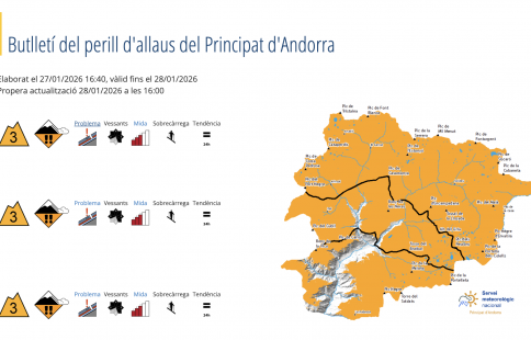 Segons el Servei Meteorològic, dimecres s’espera un dia de transició, amb moments de cel menys tapat i alguna nevada puntual de matinada. El risc d’allaus s’ha rebaixat a 3 sobre 5 a totes les vessants, tot i que a Ordino Arcalís aquest matí encara es mantenia el nivell màxim, 5 sobre 5. Si la previsió es compleix, des de Grandvalira Resorts apunten que les perspectives són bones i que es podria recuperar el 100% de les pistes operatives a les estacions andorranes.