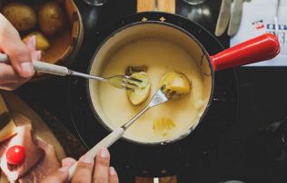 L'origen de la fondue es remunta als alps suïssos i francesos, on els pastors solien utilitzar el formatge sobrant i altres ingredients per crear un plat calent i substanciós que els mantingués calents durant les fredes nits de tardor i hivern.