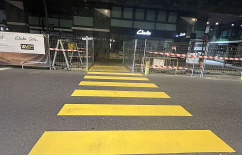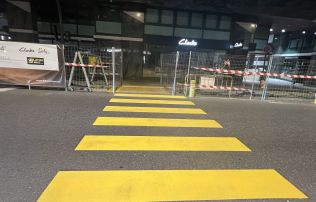 Mentre s’havien habilitat les plataformes necessàries perquè les sortides d’aparcaments no quedessin inoperatius, no s’havia previst cap solució per als vianants, que en algun cas havien de donar una volta de més de 300 metres per poder creuar. Ara, amb les obres ja una mica més avançades -encara queden mesos de treballs i la rasa s’ha d’anar obrint fins a la rotonda de la Dama de Gel, encara que suposadament a mida que es posin els tubs s’anirà tancant el forat- s’ha procedit a pintar els nous passos provisionals.