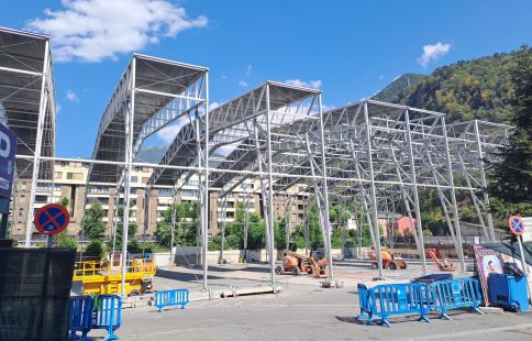 Aquest continuarà els pròxims dies, tot i que anirà el seu ritme. A més, cal desmuntar també l’envelat auxiliar, més petit, que es va col·locar al costat per donar servei als artistes. Són dies de feina i que, a més coincideixen amb algun festiu, com ara dimarts vinent, al mig. A banda, el comú posa en relleu que, quan s’acabi, l’aparcament es vol tenir lliure per a quan arribi al país la Vuelta. Serà un dels punts que s’habilitaran per a la caravana de la prova ciclista que tindrà el final d’una etapa (dia 28) i l’inici d’una altra (29) al país.