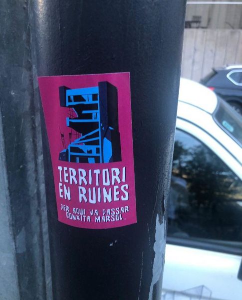 La mandatària és, doncs, el blanc dels adhesius. S’han pogut trobar tant als carrers Prat de la Creu com a la Baixada del Molí. També n’han aparegut a Santa Coloma.