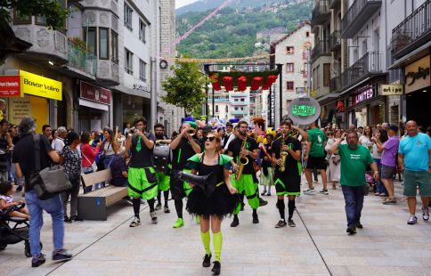 Ho Peta Street Band durant la cercavila per l’avinguda Carlemany.