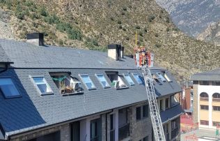 Bombers retiren d’un teulat de Sant Julià vidres trencats durant la ventada del dia 15