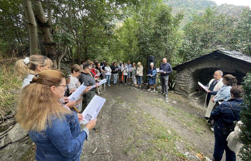 La pregària ha estat oficiada pel mossèn Antoni Elvira. Un bon nombre d’encampadans s’han volgut apropar per tornar a viure aquesta tradició, que té el seu origen en el segle XIX. Llavors, en ple camí ral de Canillo, tres pagesos van construir l’oratori, fruit d’una promesa a la Mare de Déu. La llegenda explica que tots tres ho van fer agraïts per la protecció que la verge els va oferir en mig d’una violenta tempesta.