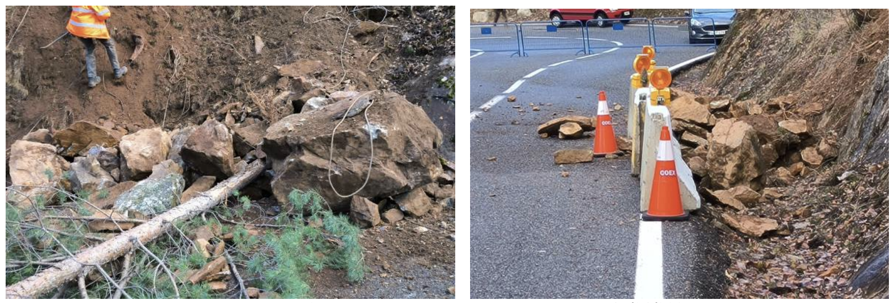 El tram de carretera es troba “sota la influència de possibles despreniments rocosos procedents del talús i vessant rocós situat a sobre de la pròpia carretera i, de fet, la zona està catalogada com a perillositat mitjana per riscos naturals i perillositat alta per caiguda de blocs rocosos.