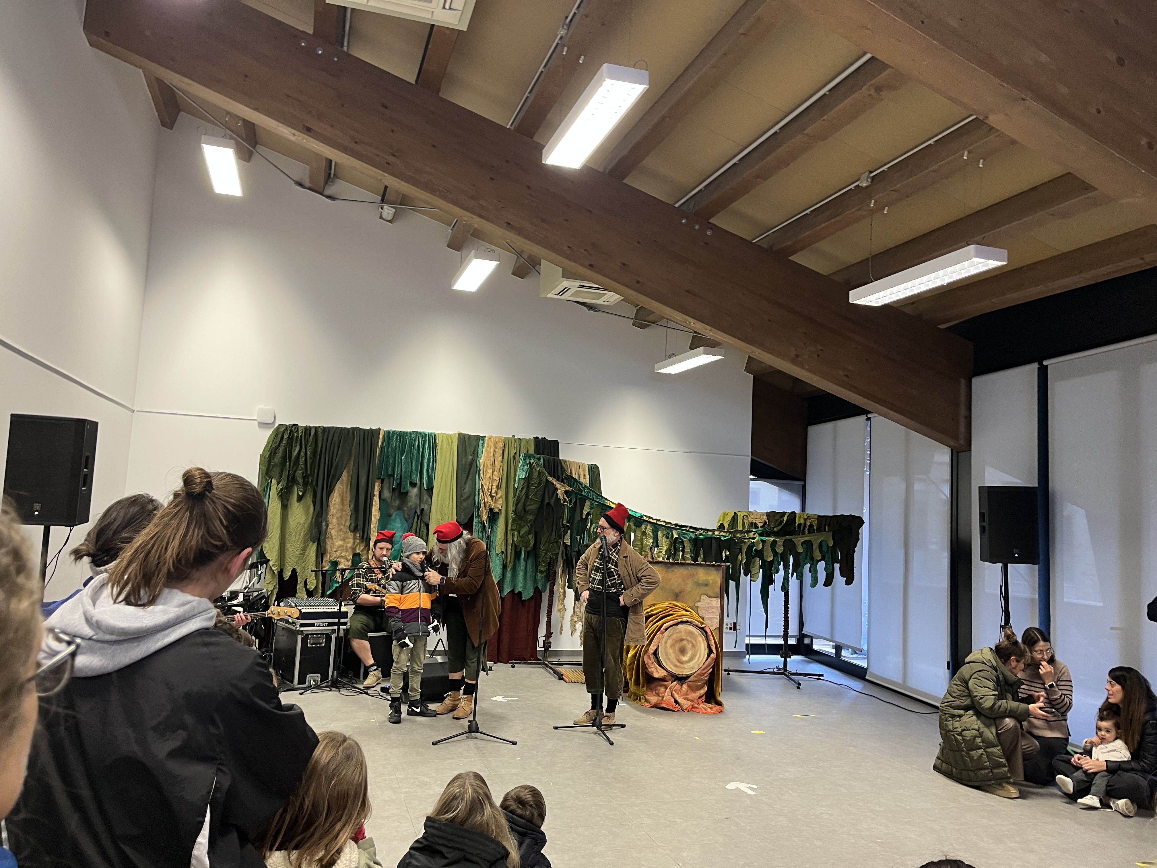 La vigília de Nadal i la celebració del tió d’Ordino ha començat d’una manera peculiar, havent de desplaçar tot cap a la sala La Buna per culpa del fort vent i a l’amenaça de pluja. Tot i el mal temps, això no aturat a les famílies que tan bon punt la campana ha tocat les 11 hores han sortit ràpidament al carrer per anar a ‘fer cagar’ el tió. Allà els esperava el grup d’animació infantil ‘Xip Xap’, que ha fet ballar pares i fills durant una hora i mitja d’espectacle.