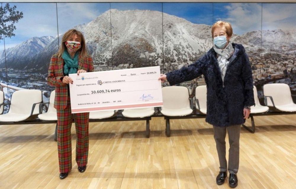 El comú d’Andorra la Vella lliura a Càritas Andorrana un xec de 30.609 euros