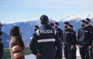 La cònsol major d'Encamp, Laura Mas, conjuntament amb el director adjunt i coordinador de la policia, Bruno Lasne, han fet una visita als instructors i als agents en període de formació per conèixer de primera mà el funcionament i l'estada a les instal·lacions comunals