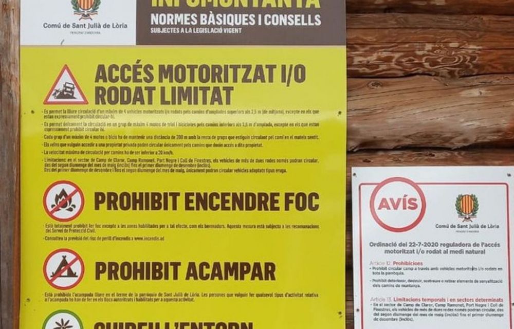 En els senyals is'informa de diversos aspectes recollits a l'ordinació com ara la prohibició d'encendre foc, d'acampar, d'accedir amb vehicles motoritzats o malmetre els avisos. També s'adverteix que l'incompliment de les normes comportarà una sanció econòmica, regulada pel Cos de Banders o pels agents del departament de boscos del comú lauredià. La vulneració de les prescripcions d'aquesta normativa poden ser lleus, greus o molt greus, i els imports poden anar des dels 50 als 3.000 euros.