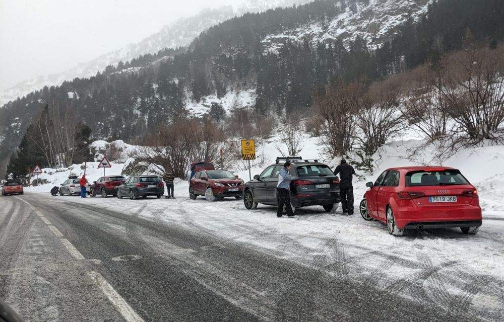 Els controls d’equipaments que estan duent a terme de bon matí la policia i el servei de circulació d’Ordino ha causat i encara genera encara notables cues de pujada cap a l’estació d’Arcalís. La filera de vehicles ha arribat a estar més enllà del Serrat. Pel camí, molts conductors aprofitaven per arrambar-se en algun lateral i intentar col·locar les cadenes aquells que no en duien.