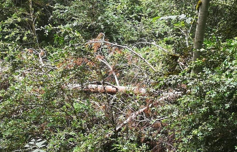 Troncs i branques al costat del camí del Roc de l'Àliga.