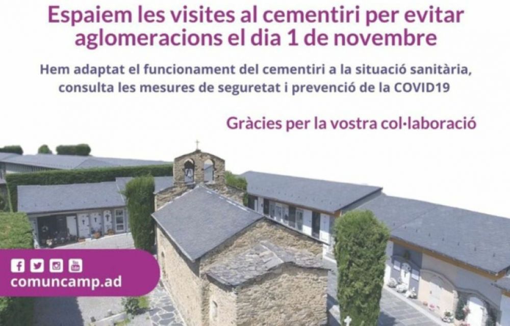 En concret, a partir del dilluns el nou horari anirà de nou del matí a nou de la nit. D’aquesta forma, el comú entén que es podran “espaiar les visites i evitar aglomeracions”. Aquesta franja d’obertura s’allargarà fins el dilluns 2 de novembre.