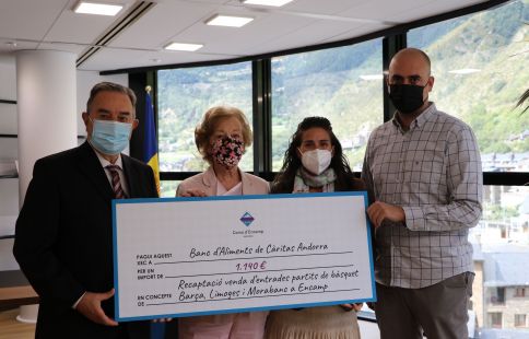 La cònsol major, Laura Mas, i el conseller d’Esports, Infància i Joventut, Xavier Fernàndez, han rebut al president de Càritas, Amadeu Rocamora, i a la vicepresidenta de l’entitat, Canòlich Baró, per fer entrega del xec amb la recaptació. Mas ha volgut destacar el paper del banc d’aliments durant la pandèmia i ha reiterat la voluntat del comú de col·laborar amb l’associació.