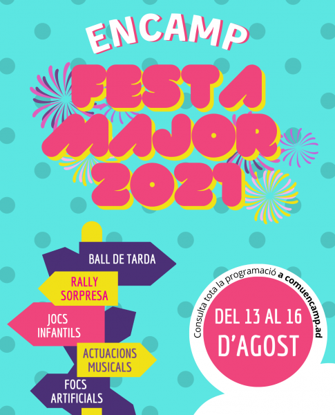La comissió de festes ha preparat un programa que començarà divendres, 13 d'agost amb una rua pels carrers del poble amb la Bandarra Street Orkestra a les 19 hores. A partir de les 20:30 h i fins a les 22.30 h hi haurà ball amb el grup de versions La Traca a la Plaça Sant Miquel. Es recupera el sopar del jovent a la sala de festes, amb un aforament limitat a 40 persones, separades en taules de 7 i amb control de test d'antígens obligatori. La compra dels tiquets es realitzarà a l'oficina de turisme d'Encamp i el preu serà de 35 euros el sopar, la samarreta commemorativa de la festa i el test d'antígens que caldrà realitzar el dia abans on indiqui l'organització.