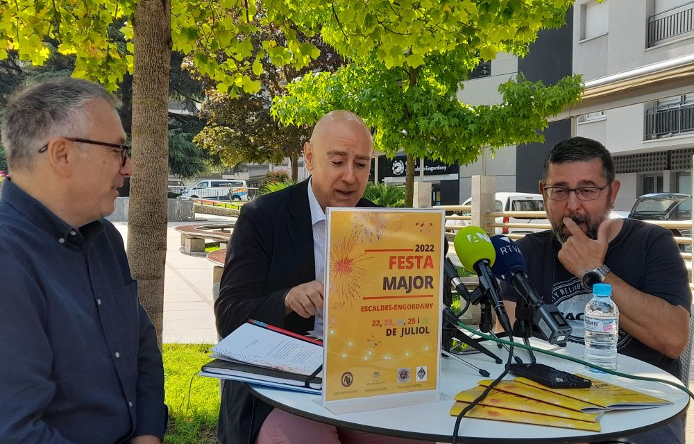 El repic de campanes i traques i la gran trabucada, com és tradicional, donaran la benvinguda a la festa major escaldenca. El mercat al passeig d’Arnaldeta de Caboet, els foodtrucks, esports i els concerts no faltaran a la festa. Els actes consolidats es barrejaran amb les novetats, com els tastos de vins, previstos pel mateix 22 de juliol i el 26 del mateix mes, o el torneig de tennis taula. Per als més menuts, els inflables, la coca, les atraccions o els personatges Disney faran les seves delícies durant els cinc dies de festa.