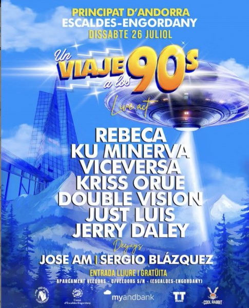 Aquells que eren adolescents a la dècada dels 90 segur que són capaços de taral·lejar algunes frases del mític ‘Duro de pelar’ de Rebeca, l’‘American Pie’ de Just Luis, “Ella’ de Viceversa o ‘Llorando por tí’ de Ku Minerva. I si els ha agafat nostàlgia de tornar als anys de joventut, la festa major d’Escaldes-Engordany serà el lloc perfecte per fer-ho. Tal com ha avançat la Unió Pro-Turisme a través de les seves xarxes socials, el principal concert de la festa major d’aquest any, previst pel dissabte 26 de juliol, estarà dedicat als èxits d’aquella dècada. ‘Un viaje a los 90s’ portarà a l’escenari del carrer dels Veedors (amb entrada gratuïta) Rebeca, Ku Minerva, Viceversa, Kriss Orue, Double Vision, Just Luis i Jerry Daley. A més, tot amanit amb els dj Jose AM i Sergio Blázquez.
