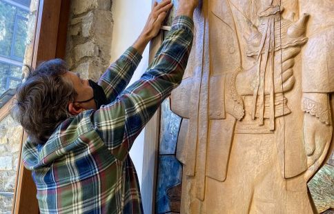 Aquest mural fet amb esmalts ceràmics i baix relleu de fusta de til·ler, és un plafó escultòric de grans dimensions i formes diverses plenes de textures. És una representació singular dels costums tradicionals, ermites i indrets característics de Sant Julià de Lòria i el seu entorn. Roger i Sergi Mas van treballar junts en l'escultura de la font de ferro d'Aixovall. L'escultura porta la inscripció d'un poema que diu que el bell ocell de mil colors també descobreix la font. Roger Mas va fer els estudis a França amb el Diplome National Supérieur Expression Plastique (DNSEP).
