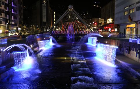 Aquesta setmana alguns veïns i vianants que es trobaven a la zona han pogut ser testimonis del nou espectacle de les fonts lluminoses sobre el riu Valira que acompanyarà el ‘Llac dels cignes’, que ja ha sonat tot l’estiu i que de moment es mantindrà.