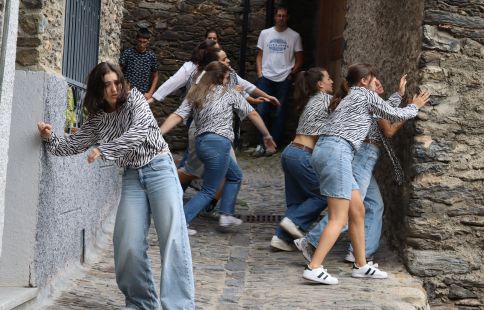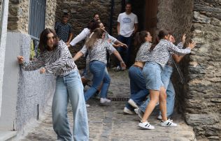 ‘Pas a pas’ és una peça que combina diferents modalitats artístiques com ara la dansa i el teatre amb l’arquitectura i l’espai urbà, en aquest cas del centre d’Ordino. Tot plegat s’ha fusionat en un sol element que, en aquest cas, tenia com a fil conductor explicar el pas de l’adolescència a l’edat adulta.