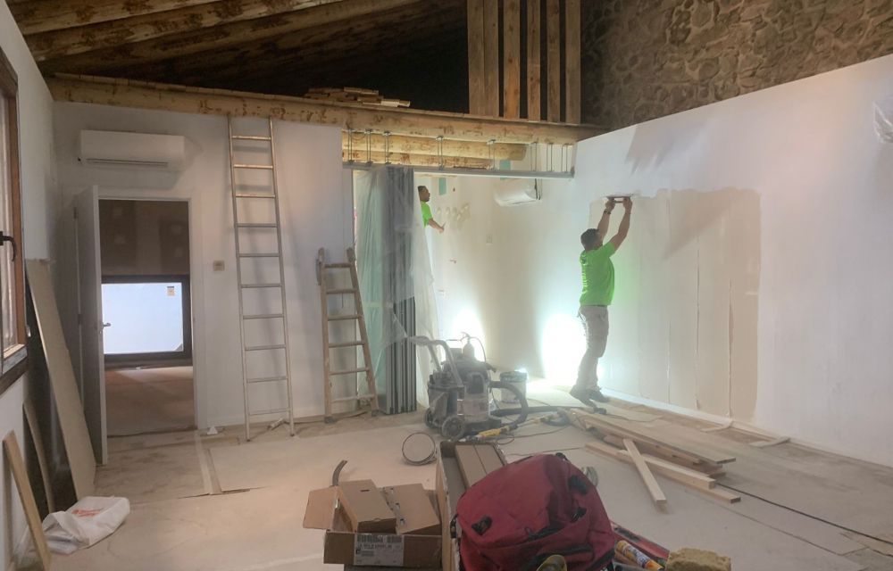 Els treballs s’han dut a terme en dues fases. En la primera, es va consolidar l’estructura de l’edifici –reparant-ne el terra i la coberta– i es va adequar la parcel·la exterior (tasques de desbrossament, neteja i enderroc d’una antiga barraca). En la segona fase, s’han realitzat les instal·lacions de llum i calefacció, s’han distribuït els espais interiors amb despatxos i sales de treball, s’hi ha col·locat parquet, s’han substituït les finestres (millorat l’aïllament dels espais) i s’han connectat les dues plantes mitjançant una escala de caragol. També s’ha repicat la façana i s’han construït nous accessos.
