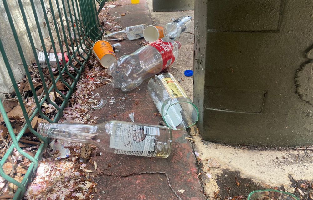 Al camí -més o menys al costat de les pistes de voleibol del parc Central- es poden veure perfectament les conseqüències d’aquest botellot, que hauria tingut lloc durant la matinada. Al llarg d’uns quants metres de passeig es troben escapades les bosses de plàstic amb les quals s’ha portat el material, gots o envasos de begudes. Algunes d’aquestes, per cert, de vidre, amb el corresponent risc que s’acabin trencant.