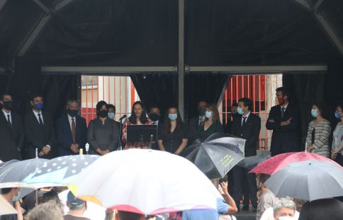 Un moment de l'acte de reconeixement, amb els paraigües també com a protagonistes.