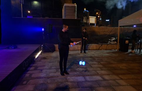 Aquest cap de setmana l’afluència ha continuat a l’alça. A més, l’organització ha apostat una actuació amb diàbolos de llum. L’objectiu era generar “un efecte crida” i sorprendre els visitants perquè s’interessin per l’activitat, ha admès Serracanta. Les persones presents han gaudit amb les habilitats dels dos artistes que han actuat mentre el DJ. punxava, tot fent tota mena de malabarismes que han provocat grans aplaudiments del públic.