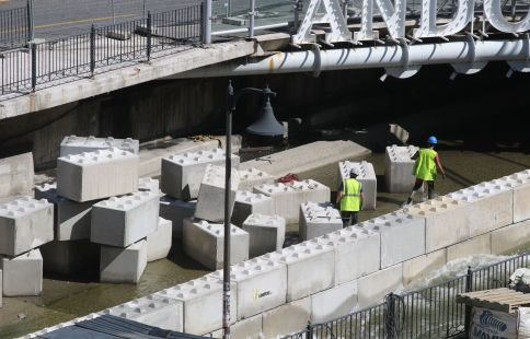 Obrers de l’empresa adjudicatària dels treballs, que es van iniciar a final de juny, ja han muntat una mena de mur separador gràcies a grans blocs de formigó. De fet, de nit s’ha hagut de tallar momentàniament els darrers dies els carrers propers per poder facilitar la ubicació dels materials i la maquinària a l’interior del curs fluvial.