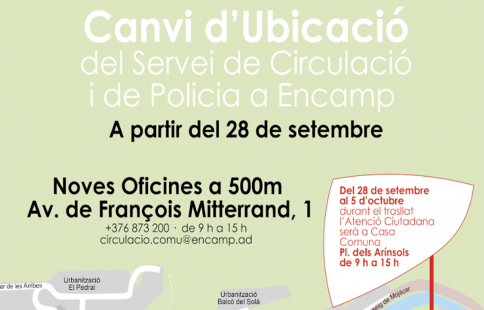 Durant aquest període d’una setmana, els ciutadans que hagin de realitzar qualsevol tramitació administrativa relacionada amb el servei de circulació es poden dirigir al comú de la parròquia, situat a la plaça dels Arínsols, des de les 9:00 del matí a 15:00 de tarda, o bé fer-ho per telèfon al 873 200 o mitjançant un correu electrònic a circulació.comu@encamp.ad.
