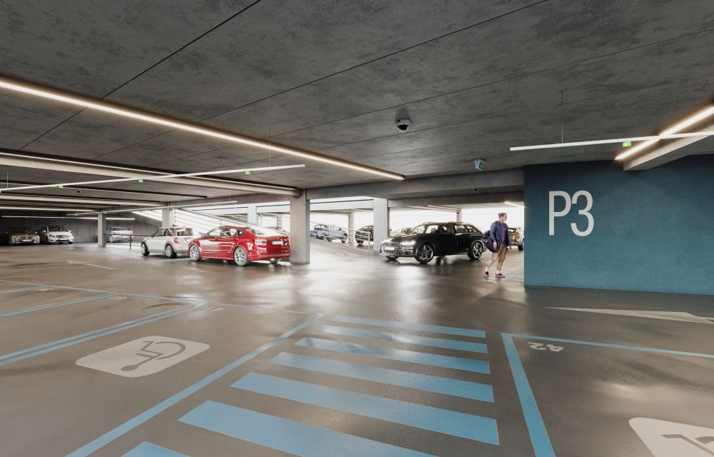 L’aparcament tindrà dos carrils d’entrada i un de sortida, per evitar que es generin cues, i a la coberta de la cinquena planta, tal com s’havia anunciat s’hi habilitaran dues pistes de tenis i una zona enjardinada. Per donar servei als usuaris de les pistes també s’han previst uns vestidors a la quarta planta.