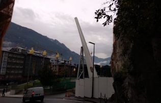 La pilona s’ubica just a tocar l’accés a l’aparcament privat cobert del Consell General. La instal·lació s’ha fet sense contratemps. En dies vinents el carrer que porta de l’avinguda Meritxell fins a Prat de la Creu s’haurà de tornar a tallar per continuar fent noves tasques, en aquest cas, la col·locació de la plataforma transitable, que tindrà una longitud de 29,5 metres i una amplada de quatre metres i que serà d’ús exclusiu per a vianants.