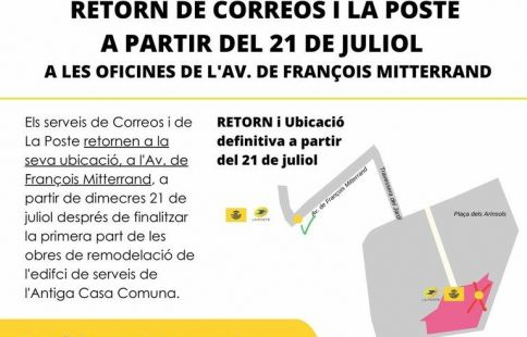 Una vegada finalitzat el trasllat, que s'està realitzant el dia d’avui i pel qual no s'està oferint atenció en aquest àmbit, l’horari d’atenció al públic continuarà sent el mateix que habitualment, és a dir, de 9:30 a 11 hores en el cas de Correos i de 9:00 a 12:00 hores en el cas de La Poste de dilluns a divendres.