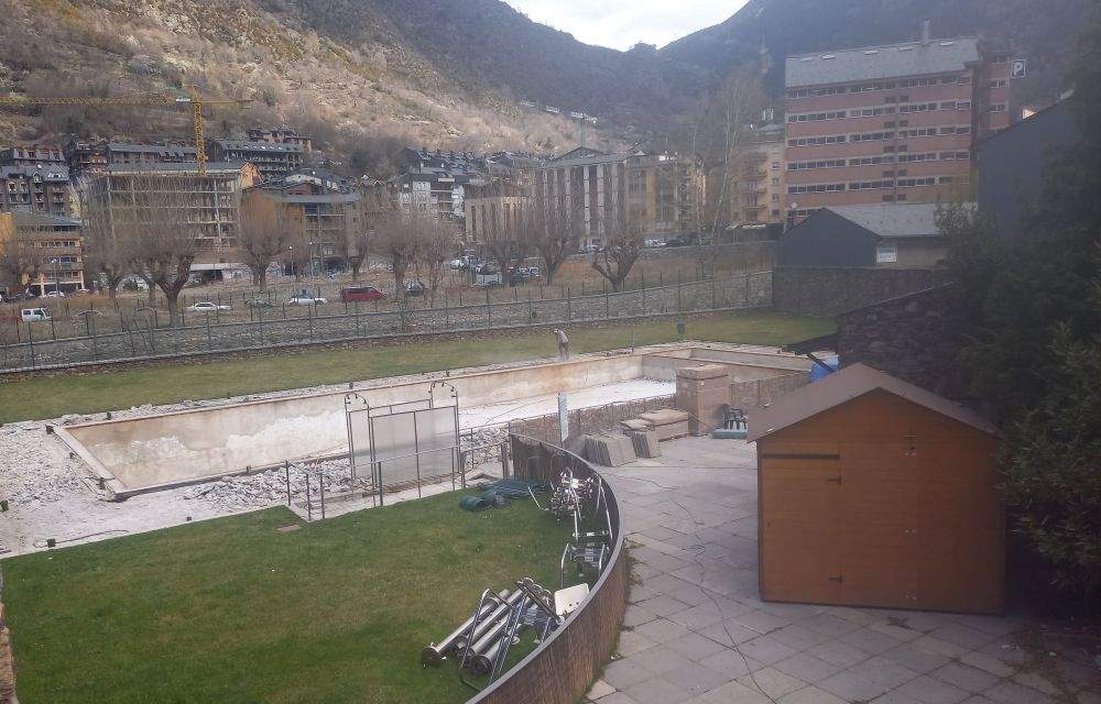 Feia temps que la piscina d’estiu del poble encampadà necessitava una millora. Es volia, per un costat, impermeabilitzar el vas de compensació i introduir altres elements com ara una nova escala metàl·lica, sortidors d’aigua o canviar la primera reixa de recollida. També es preveu canviar la gespa artificial que hi havia per un nou paviment que sigui més fàcil de netejar i antilliscant. Aquesta zona de jardí, a més, es vol fer més gran.