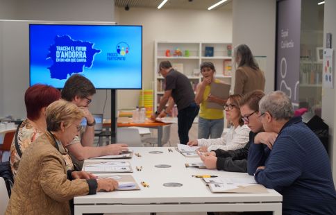 Durant la primera ronda d’aquest procés participatiu que s’ha dut a terme a la biblioteca del Centre Cultural de Sant Julià de Lòria, hi ha assistit una desena de persones que durant una hora i mitja debatran sobre les diferents temàtiques. Només en entrar, havien de respondre a una primera pregunta: ‘Quin àmbit de debat considereu més rellevant per a la reflexió sobre el futur del país?’. Els assistents que han anat arribant han hagut de posar un gomet per respondre, i l’habitatge, la demografia, l’ordenament del territori i la connectivitat, s’ha endut la cirereta del pastís, com un dels temes que més preocupa a la ciutadania. Després la porta s’ha tancat i els assistents han començat a debatre.