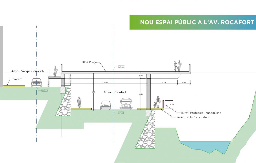L'adjudicació és un pas més per a la construcció de l'espai, que es projecte estrella del comú per aquest exercici. La inversió serà d'entre 800.000 i 900.000 mil euros amb un projecte amb el qual es resoldrà el risc d’inundabilitat a l’avinguda Rocafort i es guanyarà un espai públic d’uns 600 m2 amb accés des de Verge de Canòlich, i, a més, permetrà revitalitzar la part alta del poble. La quantitat es cobrirà amb dues aportacions plurianuals de 400.000 o 450.000 euros.