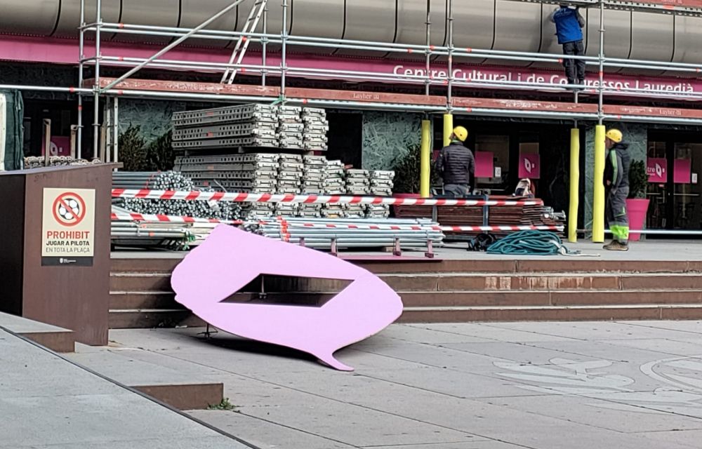 En tot cas, aquest dimarts, més enllà de retirar el logotip es munta la bastida que ja quedarà fins a la finalització de tota la remodelació. El següent pas, previsiblement ja la setmana que ve, serà retirar la façana actual, circumstància que permetrà que es pugui entrar a l’equipament el material necessari per treballar en els dos auditors, Rocafort i Claror. Amb posterioritat es col·locarà la paret principal de nou. Però això ja no es preveu que passi fins a final d’any.
