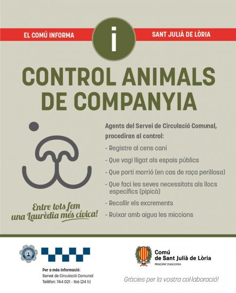 Davant la manca de civisme d'alguns propietaris, s'estan fent controls dels animals de companyia a la parròquia.