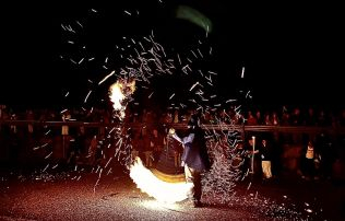 En arribar a la zona de l’aparcament, acompanyats de les gralles dels Castellers d’Andorra, van continuar rodant per al nombrós públic que els esperava. El coordinador de la iniciativa, Eduard Vergara, va fer una demostració amb una falla tradicional, feta amb beç. D’aquesta manera, la nova colla sorgida a la Massana va notar el caliu i l’acolliment dels veïns de la parròquia. Alguns d’ells recordaven com antigament els seus pares explicaven que de joves baixaven de la muntanya cremant falles.