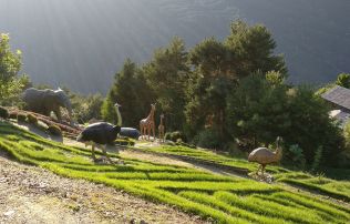 L'espai verd, creat el 2005 per una família resident a la localitat, és un dels llocs més originals d'Andorra. Està situat a 1.250 metres d'altitud, en un vessant des d'on es pot gaudir d'unes vistes espectaculars de la vall. Aquesta panoràmica permet contemplar una estampa clàssica de naturalesa pirinenca que contrasta sorprenentment amb uns jardins modelats per la mà de l'home.