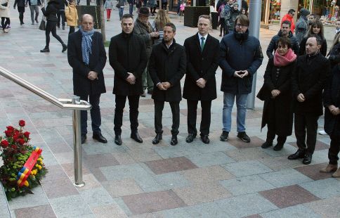 No hi ha hagut parlaments ni res de res. Suñé, Espot i Marín escortats per quatre consellers generals -Joan Carles Ramos de DA, Pere López del PS, Ferran Costa de Liberals i Carles Naudi de Ciutadans Compromesos- més el delegat personal del Copríncep francès a Andorra, Pascal Escande, han dipositat el ram de flors i tots plegats han fet una mena de minut de silenci entre la curiositat d’algunes de les moltes persones que aquest matí festiu a Espanya transcorren per l’eix comercial del país.