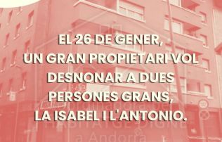A través d’un comunicat llançat per les xarxes, com sol ser habitual, fan un històric de la situació de l’Antonio i la Isabel i recorden que no és que els vulguin fer fora per impagament ni res de similar, a l’hora que recorden que l’home es dependent i la seva germana en té cura. “La cronologia del desnonament comença l’any 2020 arrel d’una denúncia per molèsties al veïnat causades per un familiar que els visitava de tant en tant i que residia a Sant Julià de Lòria”.