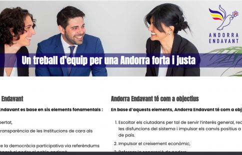 L’esquer d’aquesta nova campanya de captació d’afiliats, per dir-ho d’alguna manera, és una web on apareixen presentacions audiovisuals de les tres persones que formalment dirigeixen el partit. Carine Montaner desgrana els sis principis bàsics de l’actuació que pretén Andorra Endavant. Noemí Amador, docent, posa el seu accent en l’educació en un moment “complex” per als nens i els joves arran de la pandèmia, i Marc Monteagudo, empresari i gerent d’una gestoria demana “agilitzar urgentment els tràmits i fomentar el diàleg consensuat”.