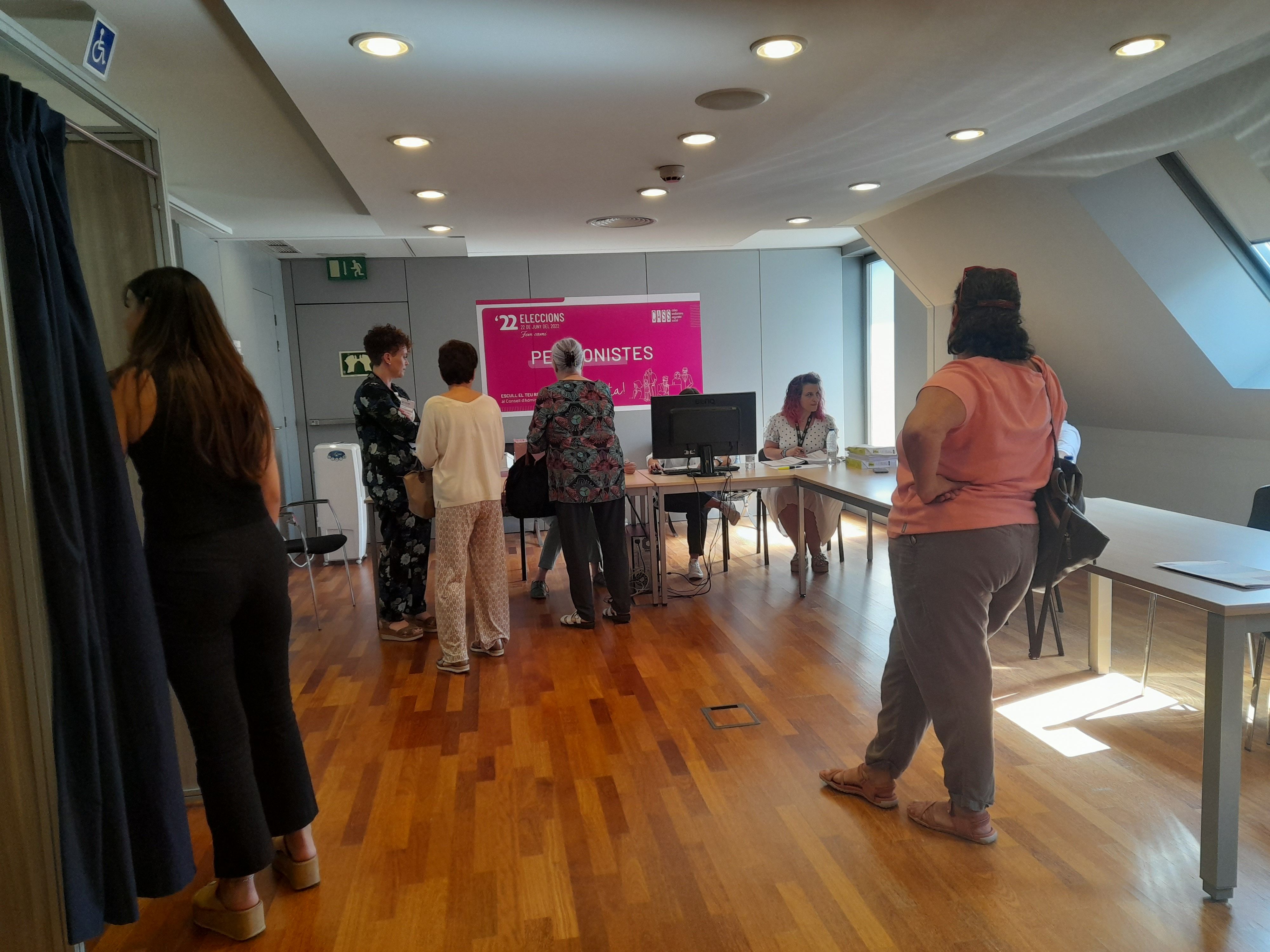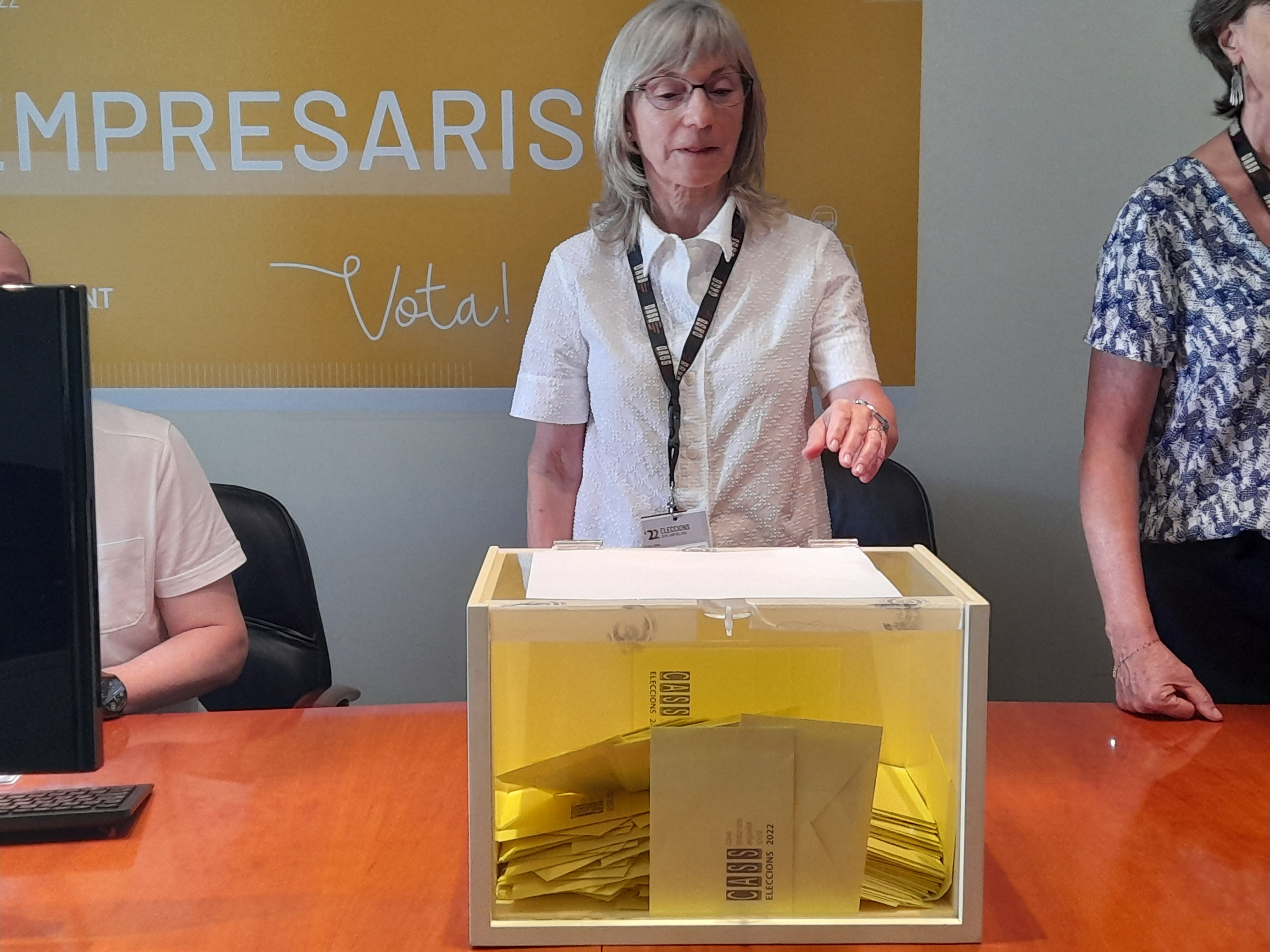 La presidenta del consell d'administració Montserrat Capdevila en una de les taules de votació.