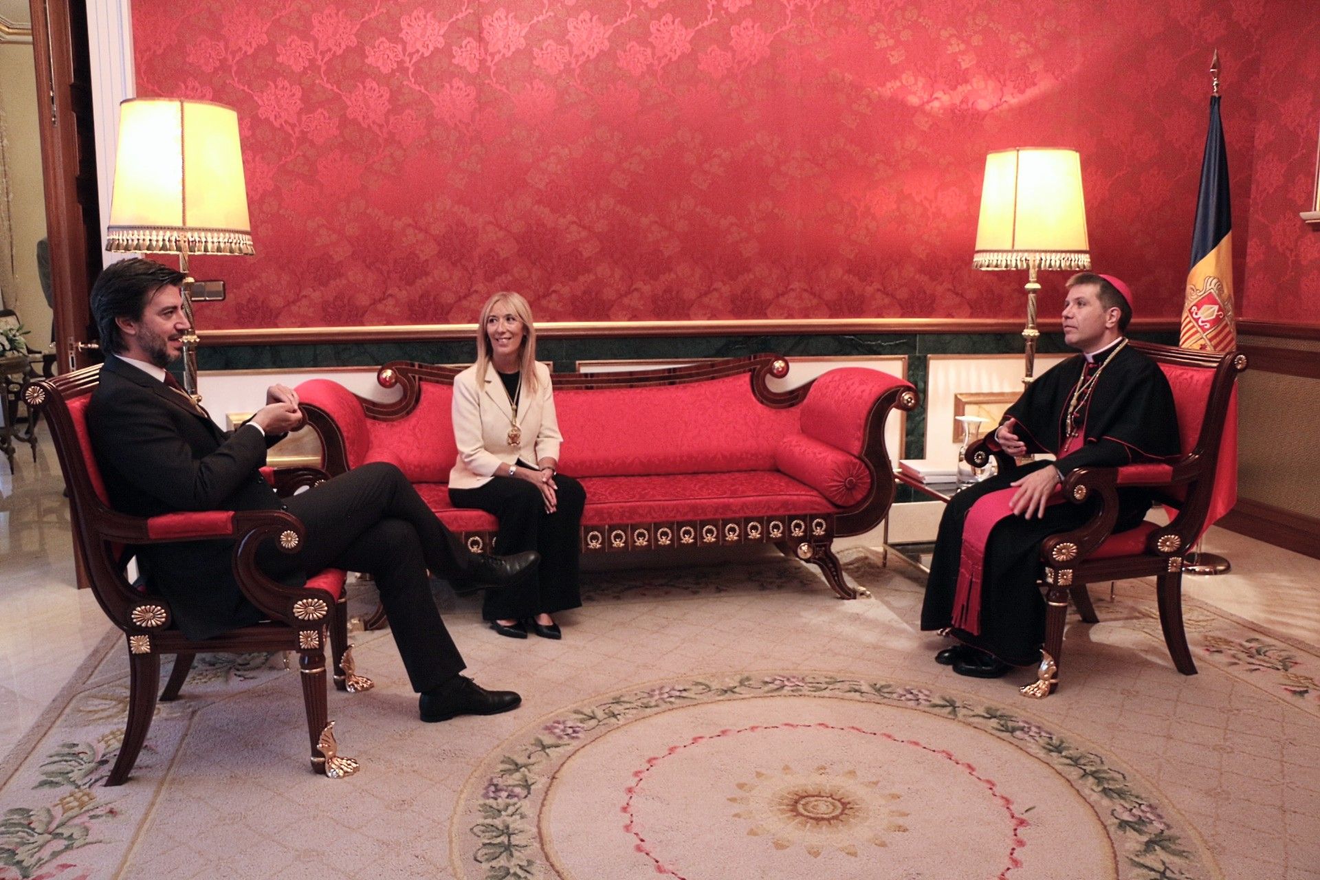 Serrano s’ha reunit primer amb Espot. Segons el breu comunicat fet públic pel bisbat, en la trobada s’han tractat les qüestions “de major actualitat política i social” del país. Posteriorment ha rebut Ensenyat i Codina. En aquest segon cas, segons el bisbat han tractat aspectes de la legislatura actual i de les activitat en curs al Consell. En una publicació a la xarxa X del compte Síndics Generals es detalla que s’ha pogut conversar dels reptes que té el país i de com es pot potenciar la coordinació entre les institucions per fer-hi front.